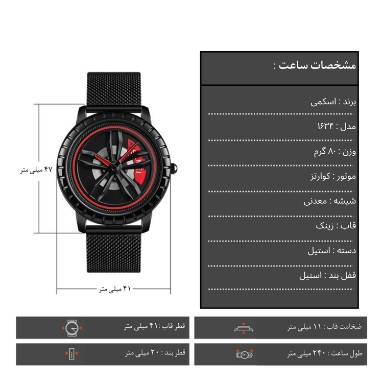 این روزها دیگر همه به تاثیر ساعت بر تیپ و استایل آگاهی کامل دارند. کمتر کسی پیدا می شود که تصور کند یک ساعت فقط کالایی برای نشان دادن زمان است.هر چه جلوتر می رویم جای خالی این محصول لوکس و زیبا را روی مچ خیلی از افراد مشاهده می کنیم. زیرا این روزها صنعت مد و فشن رابطه مستقیمی با استفاده از این اکسسوری جذاب دارد.شاید به نظر شما آنقدری که میگویند خرید یک ساعت شیک و استفاده از آن اهمیت نداشته باشد، اما بد نیست بدانید که اگر در انتخاب خود دقت کرده باشید و متناسب با آن پوشش مناسب را انتخاب کنید، آن ساعت مچی شگفت انگیز می تواند غوغایی در ظاهر شما بپا کند. شاید در نگاه نخست این زیبایی و جذابیت خیلی محسوس نباشد، اما یقینا تاثیرش را بر ناخودآگاه بینندگان خواهد گذاشت. ساعت های مچی به عنوان یک همراه همیشگی مناسب هر مکانی هستند. باشگاه ورزشی، استخر شنا، مسافرت، محل کار، قرار های دوستانه و عاشقانه و در کل برای استفاده روزمره مناسب هستند. شرکت اسکمی با ارائه مدل های مختلف اینبار ساعتی فوق العاده جذاب با تنوع رنگی چشم نواز را به تولید رسانده است.در این مدل به دلیل طراحی و رنگ بندی جذاب که در آن بکار رفته است حس خوشایندی را به شما و طرف مقابل القا میکند.